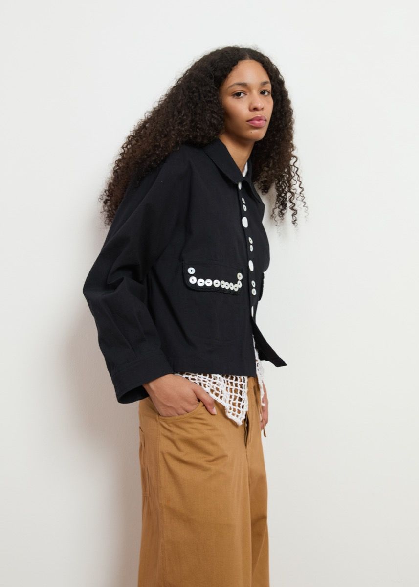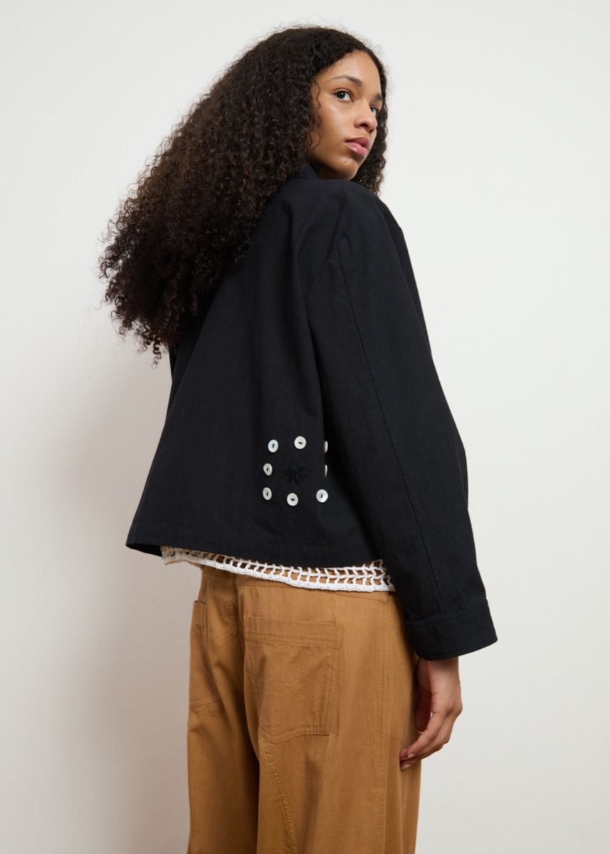 Back in stock, our best seller Ami jacket with pearl button appliqué sold out so fast many of you wish listed them to come back so here we are! Featuring crochet edge detailing on the collar, pocket flaps and our signature hand embroidered flower, this jacket is full of special handmade qualities. Made of organic cotton fabric and in limited edition. Ship out for this item starts April 30th*