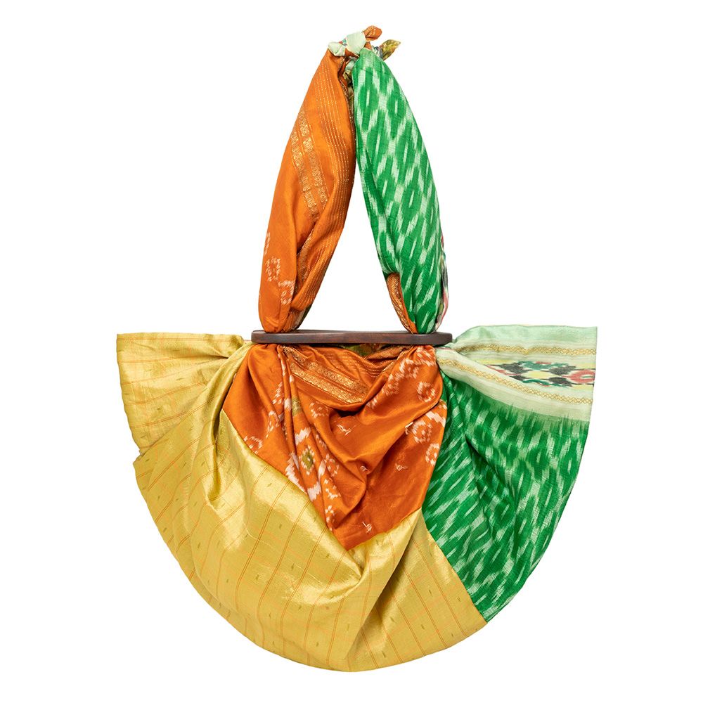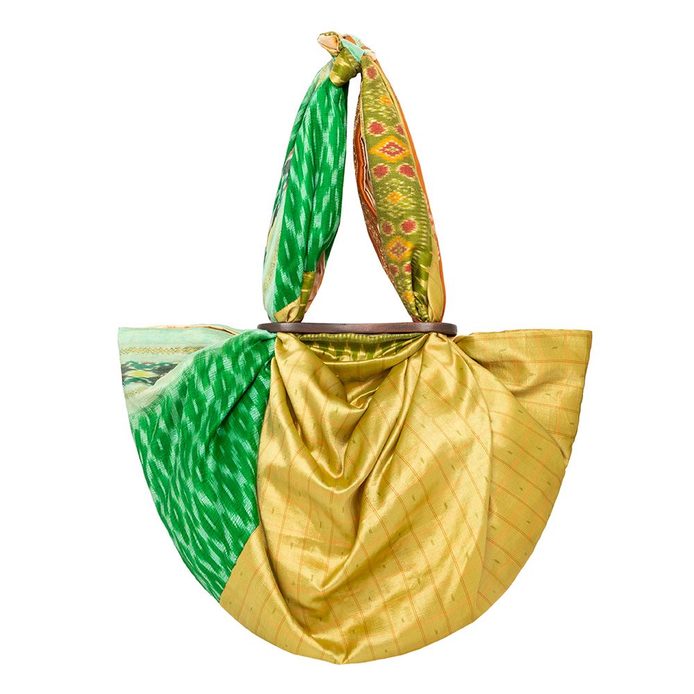 Our new capsule of handbags have been pieced together in our small studio in Milan, Italy and are one-of-a-kind. This project is a celebration of our passion for handcrafted pieces and storytelling through cloth. All of the materials used have been entirely recycled from antique saris. Any wear, mending and irregularities are unique to the antique one-of-a-kind Sari textiles used. Featuring our signature smooth hand carved wooden magnetic closure created for us with our partners in India, perfect for traveling or everyday use, it even fits your laptop :).