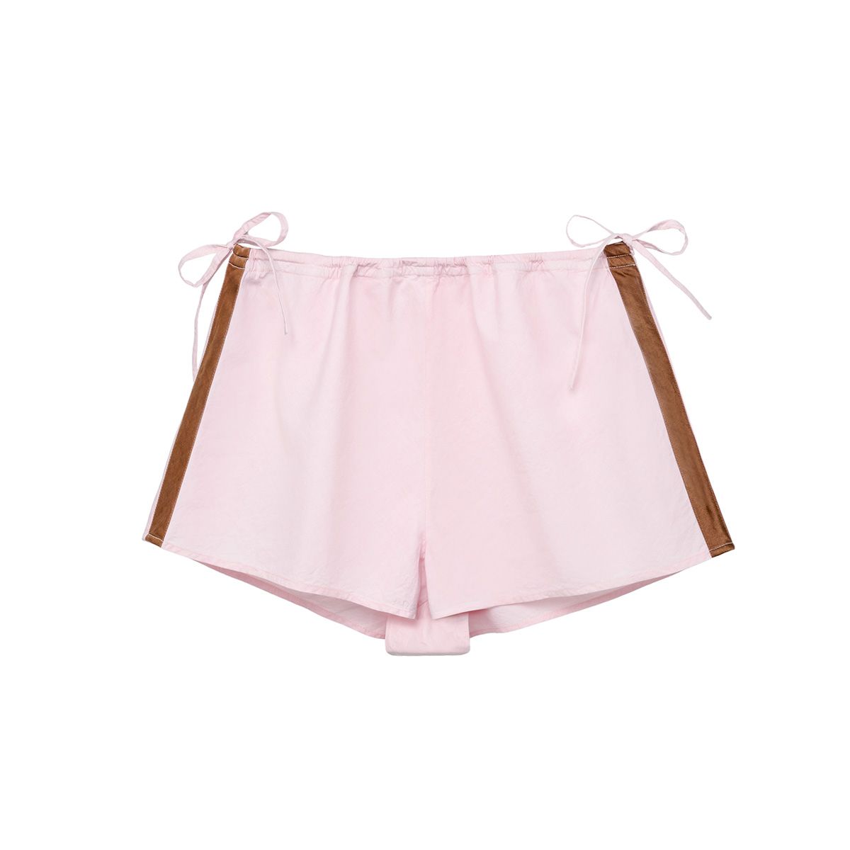 The Wilson shorts are a vintage inspired silhouette from sleep shorts. They feature side drawstring closures in addition to a soft elastic at waistband and a strip of chocolate brown silk inserts on either side. 100% organic cotton poplin and 100% mulberry silk inserts.