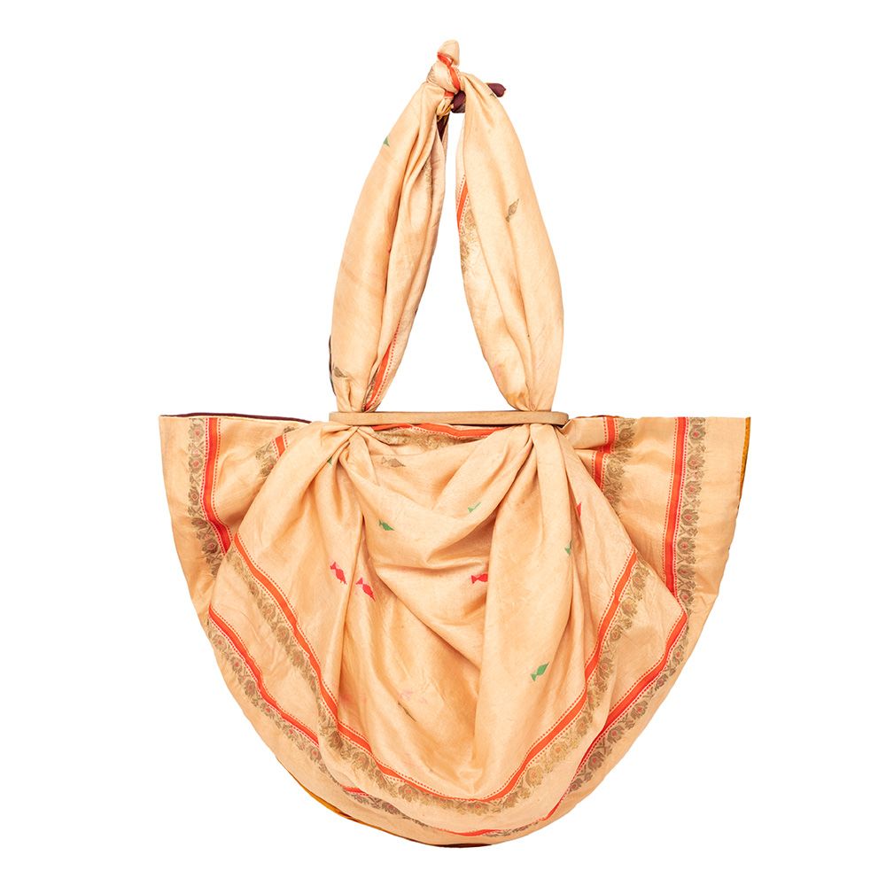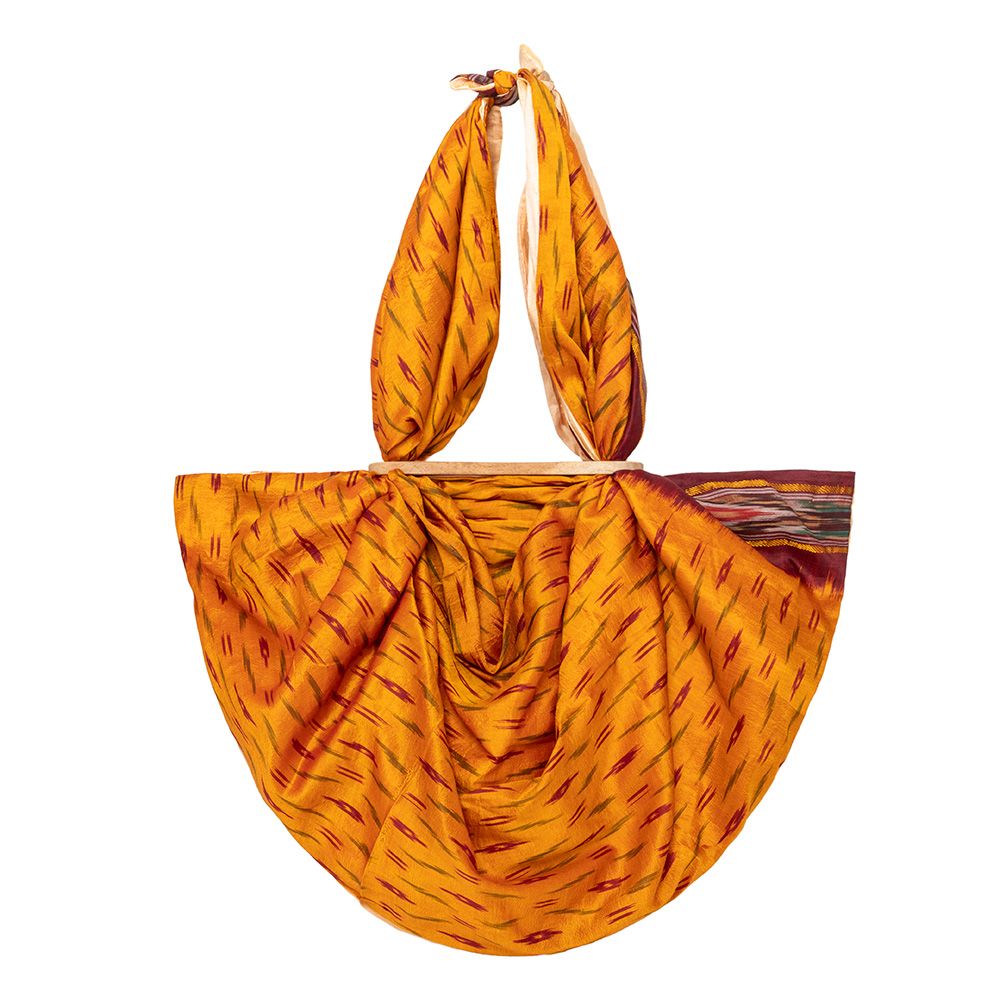 Our new capsule of handbags have been pieced together in our small studio in Milan, Italy and are one-of-a-kind. This project is a celebration of our passion for handcrafted pieces and storytelling through cloth. All of the materials used have been entirely recycled from antique saris. Any wear, mending and irregularities are unique to the antique one-of-a-kind Sari textiles used. Featuring our signature smooth hand carved wooden magnetic closure created for us with our partners in India, perfect for traveling or everyday use, it even fits your laptop :).